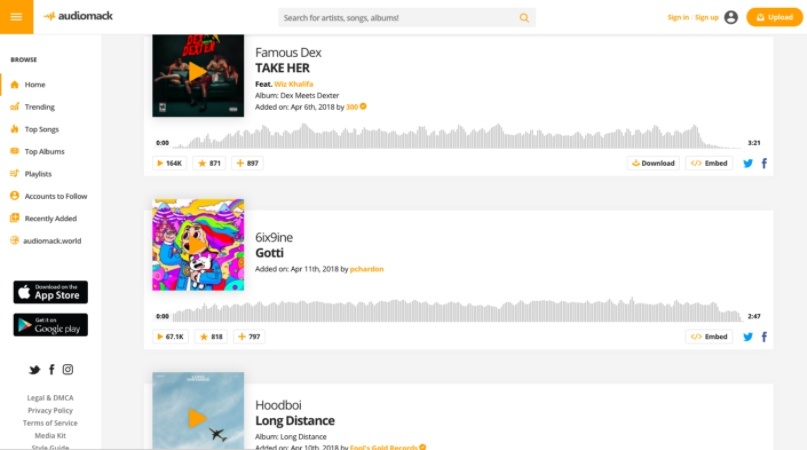Audiomack is an emerging music sharing platform that has a user-friendly interface which makes it the best SoundCloud alternative. This free music download website is a hub for artists, labels, and music lovers to discover amazing music.