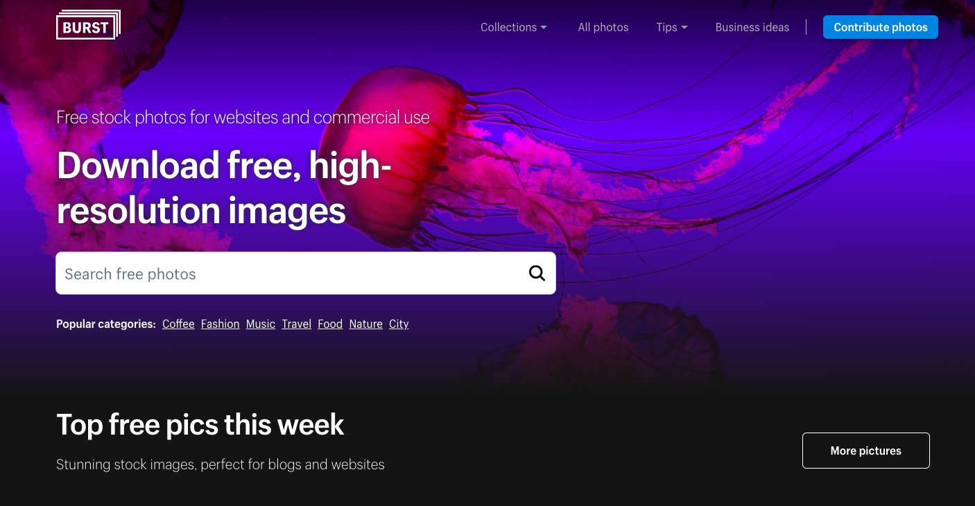 Burst is a free stock photo site by Shopify that brings together several photographers to a common platform. The image library provides royalty-free images to designers, developers, bloggers and entrepreneurs to be used in websites, desktop backgrounds or social media.