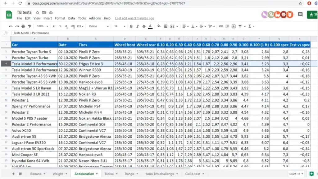 Tesla claims the updated Model 3 is 0.1 seconds quicker than the previous one and here what we see is the difference is just 0.03 seconds. But there was a catch, Bjorn said, that results of the 2019 Tesla Model 3 were recorded in summers with summer tires.