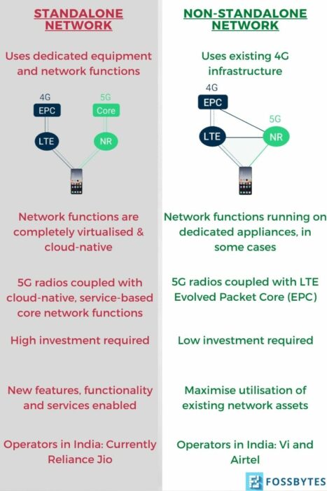 From an overview, reports indicate that companies like Airtel and Vodafone will use the non-standalone infrastructure. In contrast, Reliance Jio, the biggest bidder for the competition, might go for standalone infrastructure. Considering the ability to make full use of the existing network assets, Mr. S.P. Kochar, Director General of the Cellular Operator Association of India, strongly suggested opting for a non-Standalone network rather than a standalone one. His quote from a recent interview with The Print states: