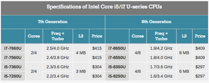 8th Gen Kaby Lake Refresh vs. 7th Gen Kaby Lake: Specs
