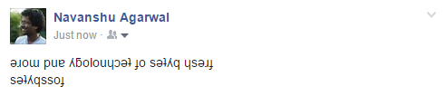 In the mood for a little fun in Facebook tips and tricks article? How about flipping your Facebook Status? Just Click here , Enter the text of your status in the provided text-field and simply copy, paste and post it to Facebook. Enjoy while your friends turn their heads around to read the status.