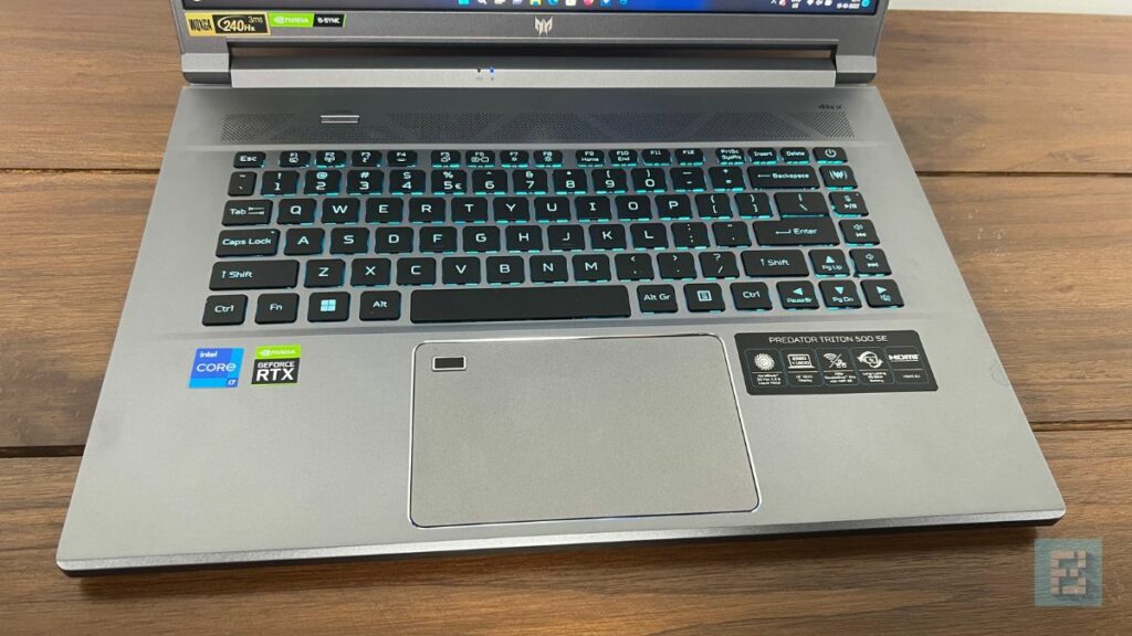The laptop’s trackpad is decently big and also houses a fingerprint sensor. In an ideal world, the fingerprint sensor should always be on the power button. Moving my finger across the keyboard after I press the power button feels a bit odd. But I became accustomed to it after several tries. The keyboard on the laptop is not “mechanical.” I emphasize it because it is difficult to pull off a mechanical keyboard setup on a laptop, and those who do manage to pull it off (Alienware, MSI Titan), for example, often end up making some keys harder to press.