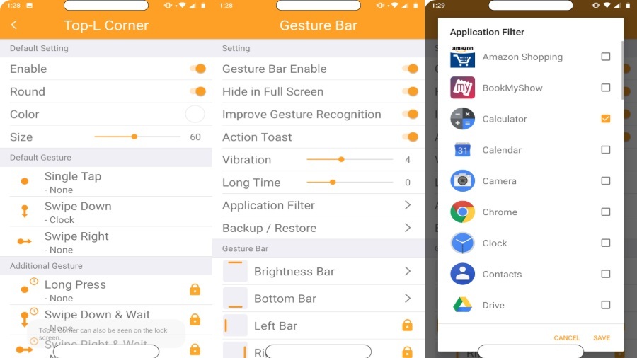 The app also provides different functionalities for the various gesture options. For instance, you can set the swipe up the option to any edge area for going to the home screen.