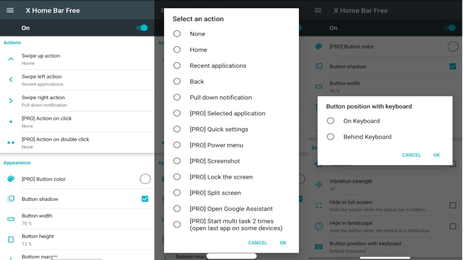 Similar to Oxygen OS in OnePlus phones, the app enables swipe gestures from the bottom of the screen. You can change the activation (gesture) area height, color and even hide it.