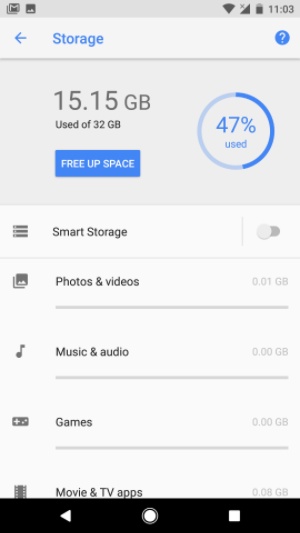 Smart Storage is an existing feature that complements the revamped storage section. It automatically deletes photos and videos from your device when the storage is almost full. This happens only to the files which have been backed up to Google Drive.