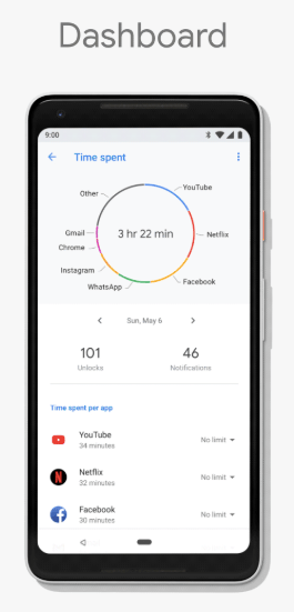 One of them is ‘Dashboard’ which breaks downs phone usage data to show how you spend time on your device. It displays: