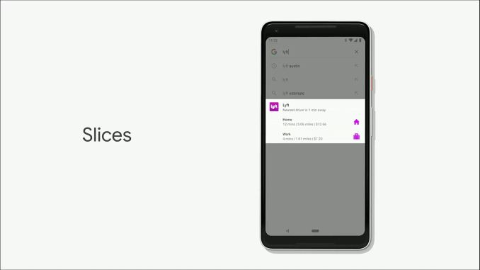 Let’s say you search for ‘Lyft’ in Google Search. An interactive Slice appears on screen that displays price and time for a trip to work so that you can quickly book a ride.