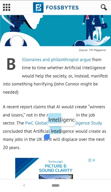 We can finally get rid of the annoying mistakes of selecting incorrect text. Android P will now support Zoom lens feature. Basically, when you long press a phrase, it will automatically magnify at the pointer. Not to mention, this will help you read small text and selecting words precisely.