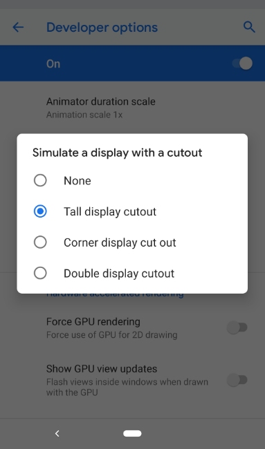 Henceforth, Android P features an edge-to-edge screen support with an option to “Stimulate a display with a cut-out.” The new feature will encompass different types of cut out modes like narrow, tall, and wide to suffice different notch dimensions. This option can be found after enabling the developer options. After doing so, follow Developer options > Drawing > Simulate a display with a cutout. Finally, choose the cutout size.