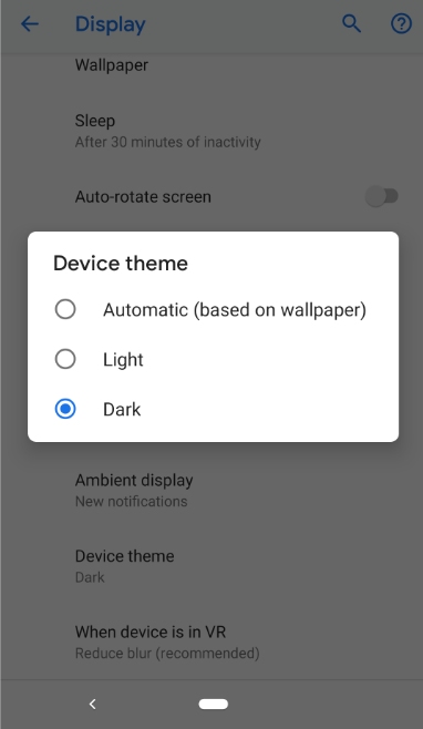 In the past, Google automatically applied a dark or light theme based on the wallpaper’s color tone. But Android P features a notable option to manually change from different themes.