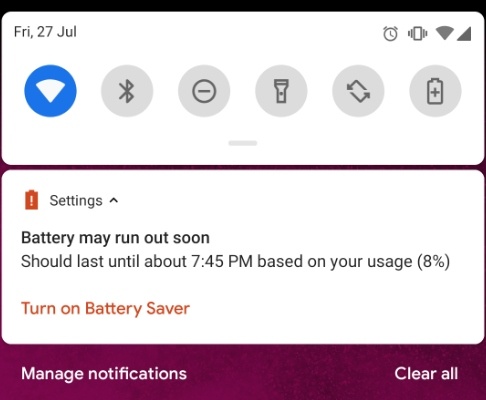 Battery notifications are no longer the same as Android Oreo. First and foremost, gone are the things like orange status bar and navigation bar in battery saver mode.