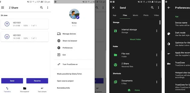 Z Share is an open-source file sharing app developed by an Indian developer. With an easy to use interface and no internet connectivity requirement, it is one of the best made-in-India ShareIt alternatives you can use to transfer files between Android devices.