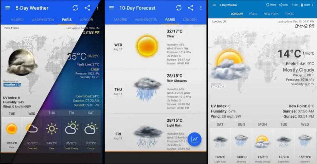 The Weather Channel is one of the best weather apps for Android which provides you with accurate weather information and forecasts for any location in the world. It covers all the necessary features like temperature, future forecast, weather alerts, radar maps, etc. There is also weather news, breathing index, UV index, several widgets, and lightning and pollen alerts.