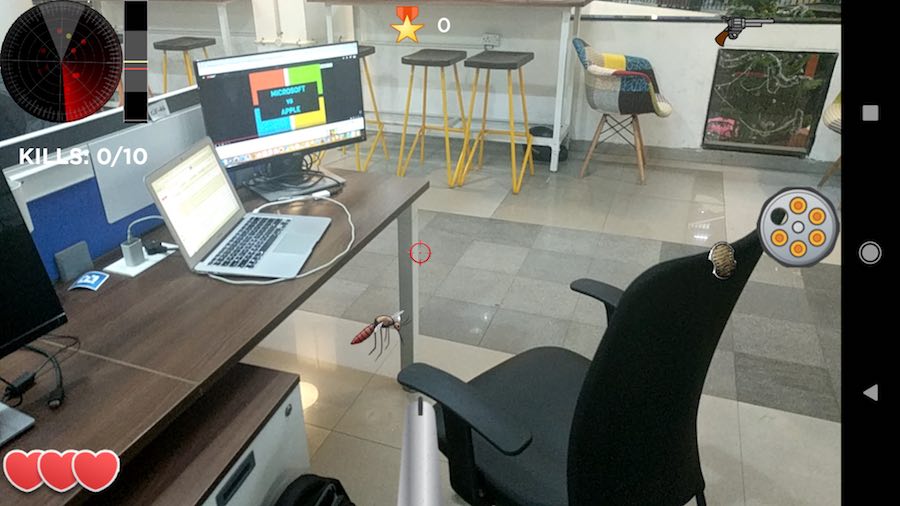 This is a fun Android AR game to totally waste your time. A couple of insects show up on your radar. You have to find them through your camera by moving your device around. The insects show up all around you, and it is a lot of fun to shoot down mosquitos using a gun. This AR game is free with some in-app purchases.