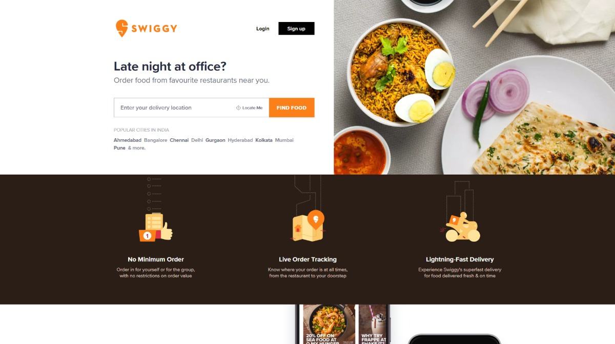 - Swiggy offers late-night food delivery service (almost 24×7, depending on restaurant availability)