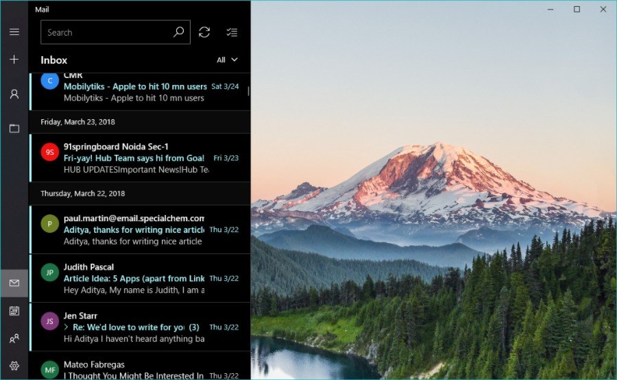 Probably the best free email client, the Mail app comes pre-installed with Windows 10. It is the free alternative to Outlook that’s bundled with Microsoft Office. Windows 10 Mail app is stripped down in features when compared to Outlook, still, it doesn’t let you down in features.