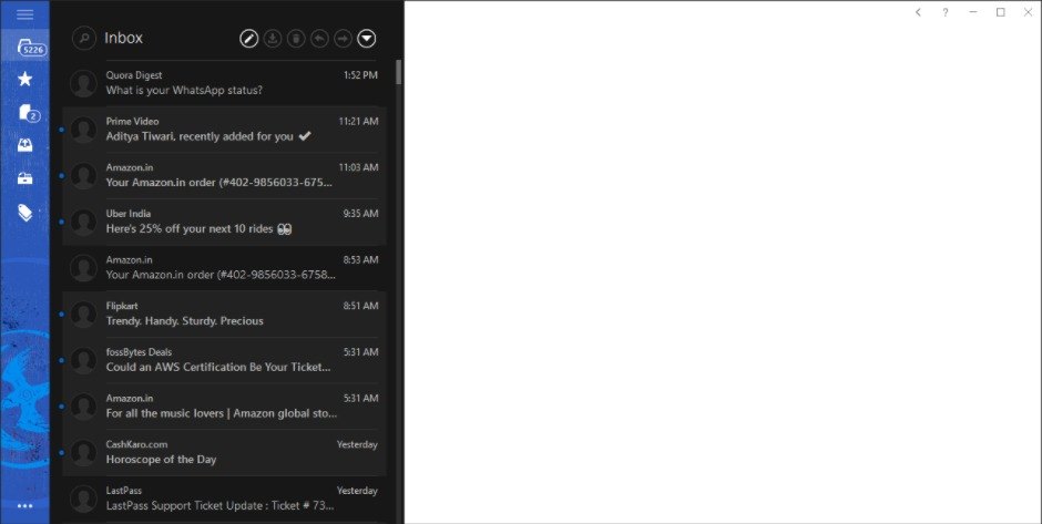 This free email client for Windows supports Microsoft, Gmail, Yahoo, iCloud, Rediff, and many other email services that support IMAP and POP. You can view your emails in separate inboxes or merge your account to display all the emails in a single Linked inbox.