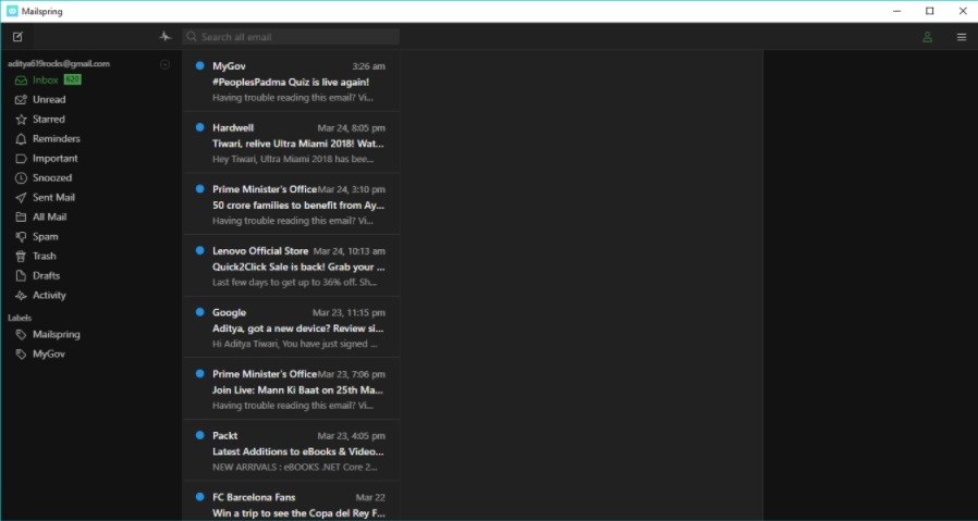 Mailspring is a powerful email client for Windows. It is a fork of the defunct email client Nylas Mail, created by one of its developers as a lightweight successor.