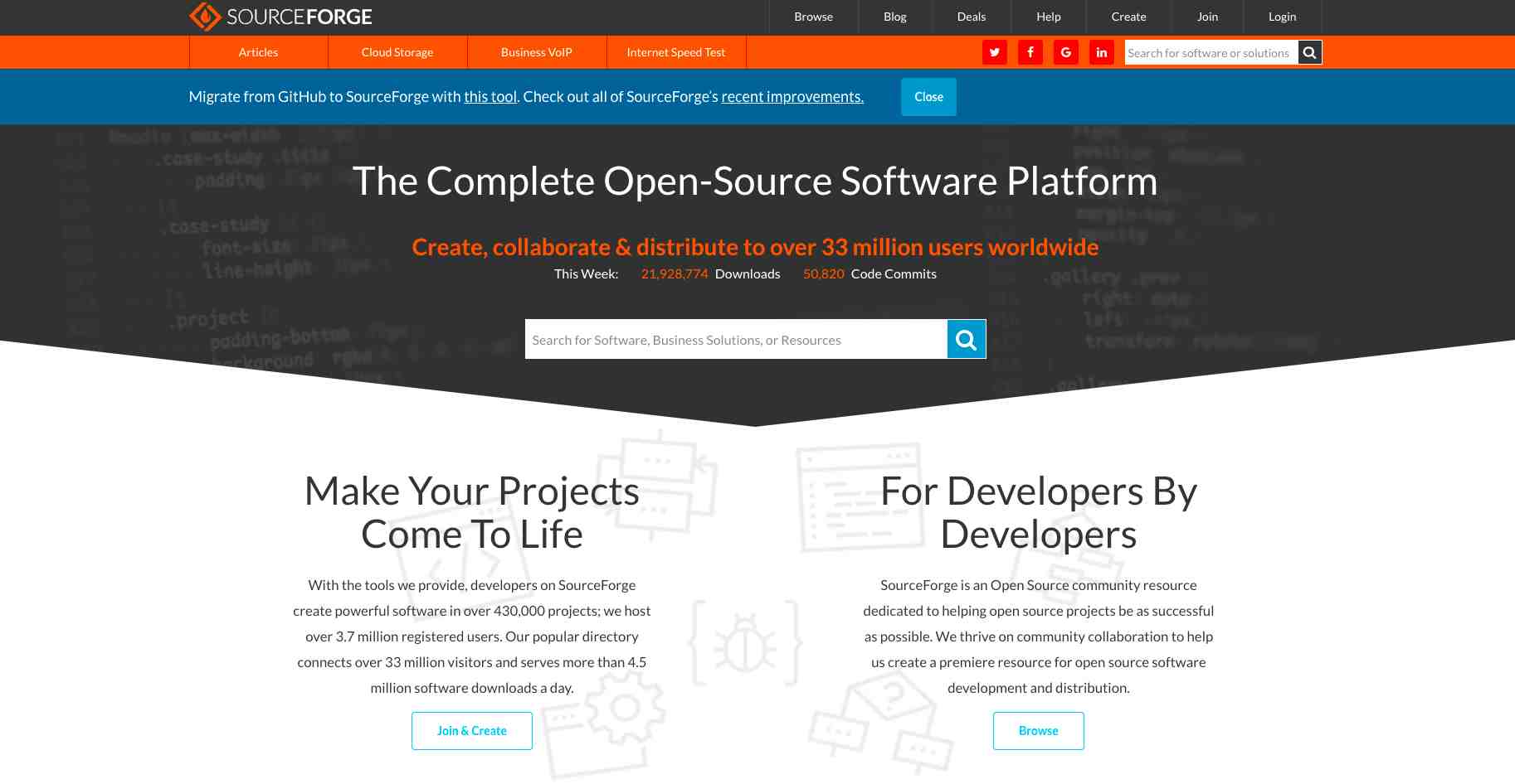 On this platform, users are free to choose either Git, Subversion, or Mercurial as their preferred version control system. Like other websites, SourceForge also offers tools to import their selected or entire GitHub repositories into existing projects. There is also a popular directory that connects millions of users to several open source projects.