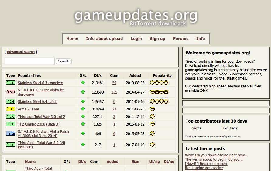 If you love gaming and you don’t wish to spend tons of money buying gaming titles for your PC or console, Game Updates can help you out. It’s a community for legal torrents for gaming that doesn’t ask you to signup for downloading content. However, if you wish to contribute your own free and legal games, you can register your account. Game Updates also claims to have seeders to keep the torrents up as long as they are needed. Talking about the home page of this legit torrenting website, at the top you’ll see a search box. Below that, you’ll find a list of popular torrents. You can sort the available torrents on the basis of size, downloads, date, etc.