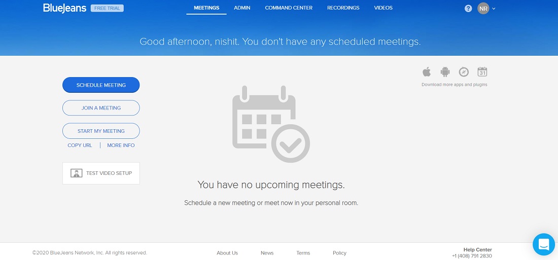Blue Jeans is a reliable video conference apps used for conducting business meetings. It is a user-friendly and easily affordable app that provides video conferencing for 25 members at a time. Participants are not required to create accounts to attend a meeting on Blue Jeans except the host.