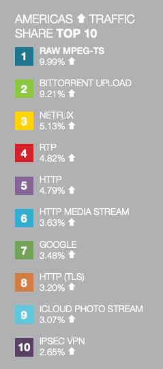 Video content constitutes 58% of the total downstream volume of traffic on the internet, and just 15% of it comes from Netflix. On the other hand, BitTorrent has grabbed 22% of the upstream volume.