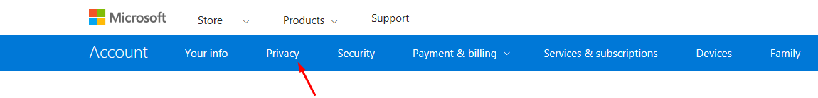Alternatively, if you’re on some other device, you can visit accounts.microsoft.com and log in using your Microsoft account credentials. Next, click the link called Privacy .