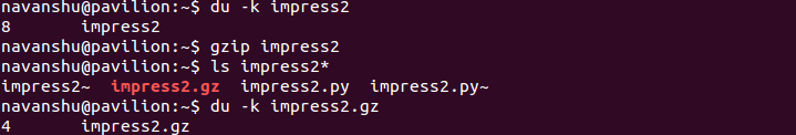 Consider the following example, suppose I wish to compress a file named “ impress2” , then I will proceed as follows: