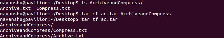 Now before all of this goes over your head, let me explain it with the help of an example. Suppose I have a directory named “ Archive&Compress ” whose tar archive I wish to create, here is how it can be done: