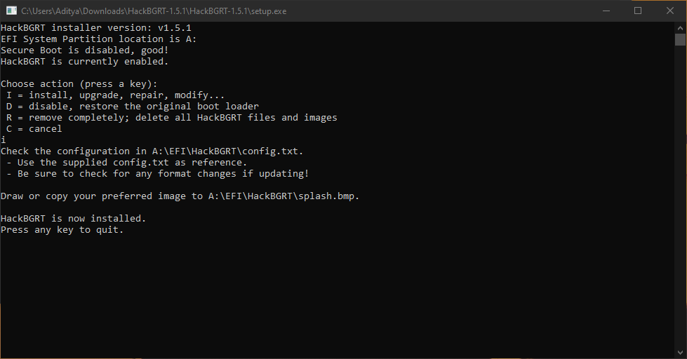 To reset the changes you’ve made, just open HackBGRT again and press the R key.