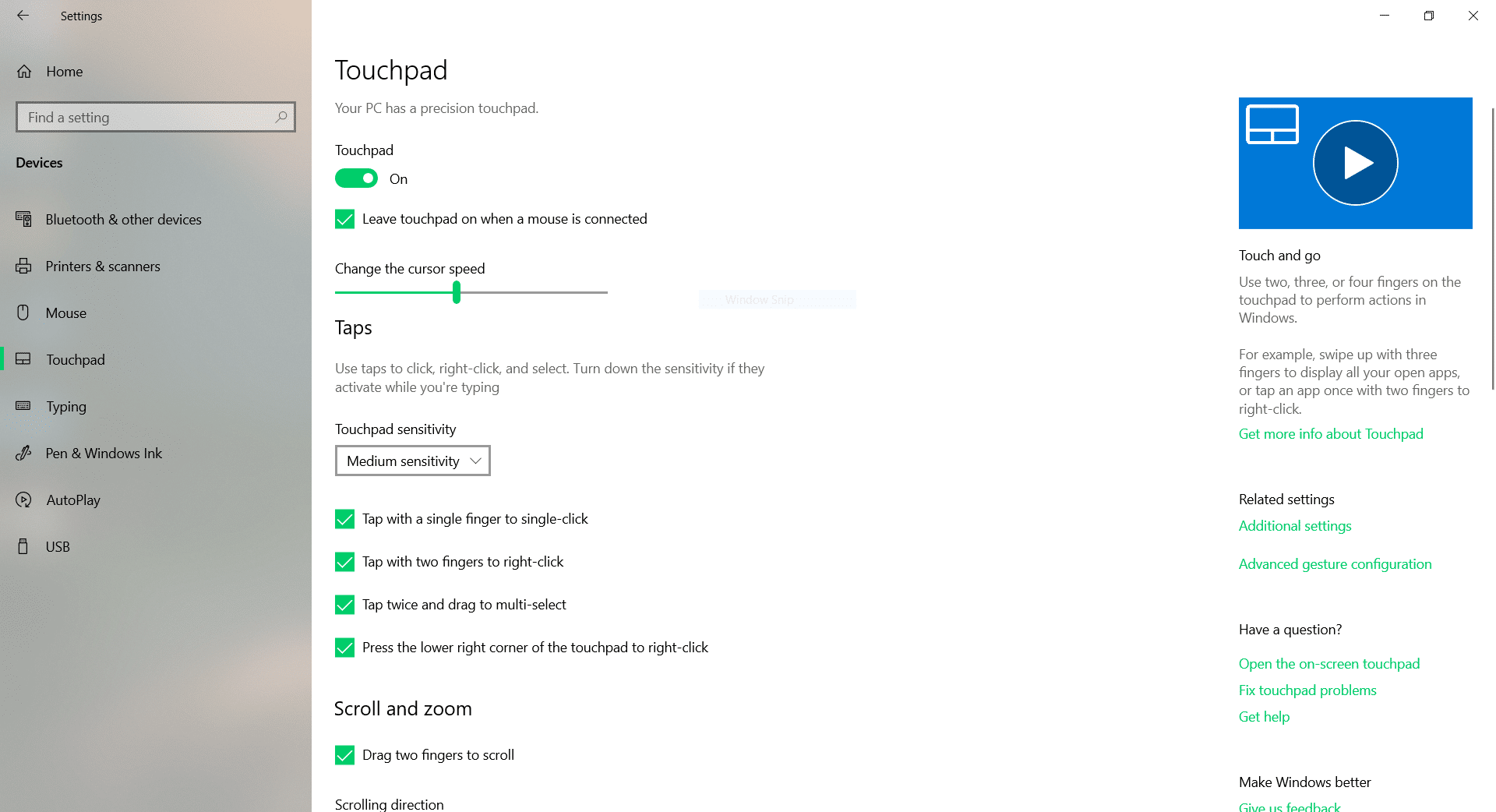 Here, you’ll find all the gestures and customizations that you can apply to the touchpad on your Windows 10 PC.
