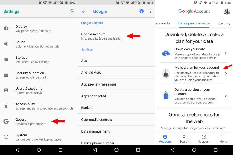 The same settings can be accessed on your Android device. Follow the steps to configure the inactive account manager:
