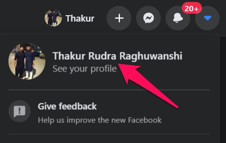 Open Facebook in any browser and click on the inverted triangle button.