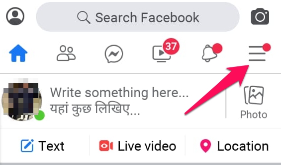 Open the Facebook app on your phone and tap the Hamburger menu icon. Tap on the