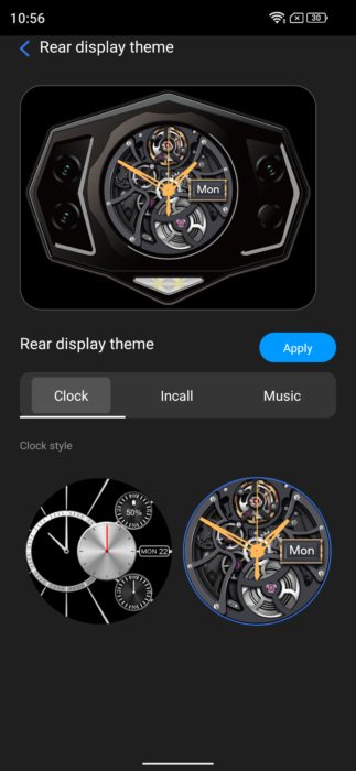 The rear display is also an LCD unit. I didn’t find myself using it much as all it can do is answer calls and control music. You can also change the way it looks in the settings. However, it could be a good feature for you if you usually keep your phone with its back facing up and if you want to check the time and battery percentage. Overall, it’s constrained as of writing this, but I hope they add more to it, like the ability to control the camera, etc., in future updates.