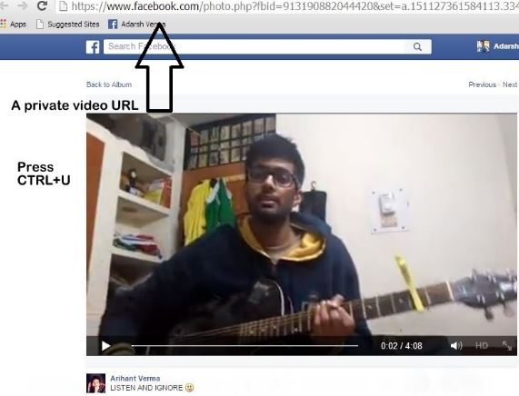 Right-click and open the video in a new tab. The private Facebook video’s URL will look something like https://www.facebook.com/photo.php?fbid=913044420&set=a.15841…..