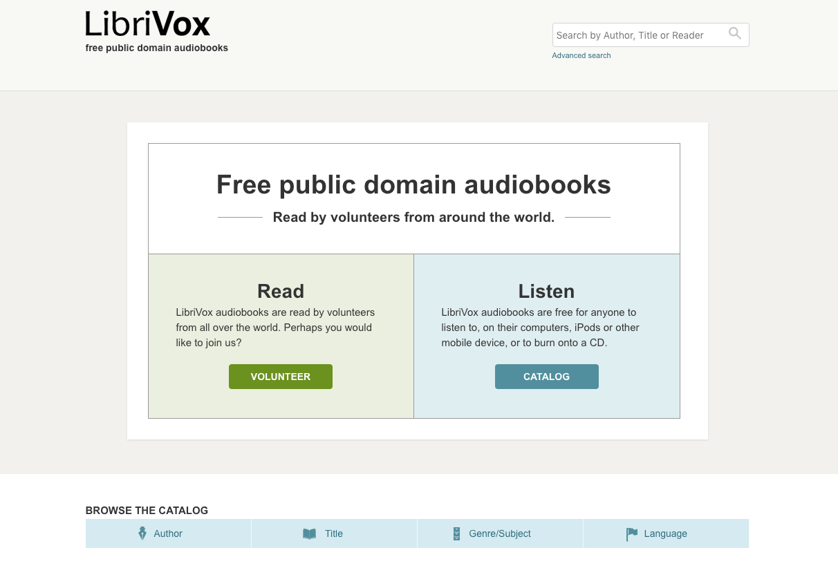 Would you rather listen to books instead of reading them? Try LibriVox. It is a digital library of audiobooks which are absolutely free. The free audiobooks are read by volunteers that work to release quality recordings of classic books.