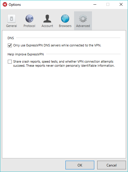 You can see the expiry date of you purchase ExpressVPN subscription in the accounts tab and download extensions by clicking the link in the Browsers tab. Under the Advanced tab of this fast VPN service, you can choose whether you want to use the ExpressVPN’s DNS servers or not when you connect to their VPN.