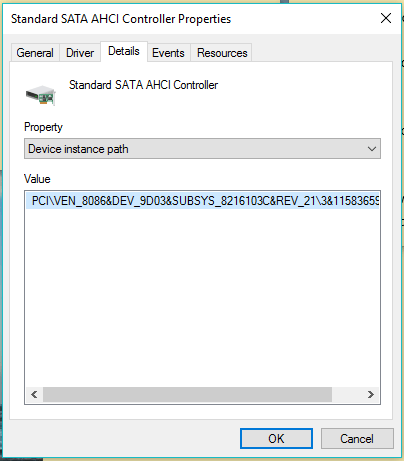 Once you have found the correct AHCI Controller using the given string, navigate to:
