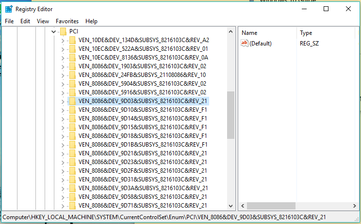 HKEY_LOCAL_MACHINE\System\CurrentControlSet\Enum\PCI\
