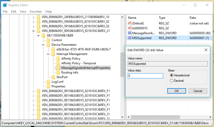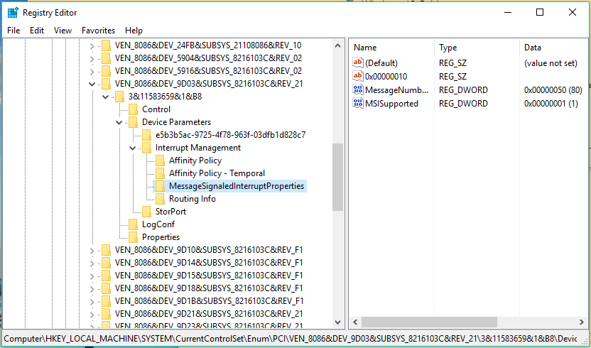 Device Parameters\Interrupt Management\MessageSignaledInterruptProperties