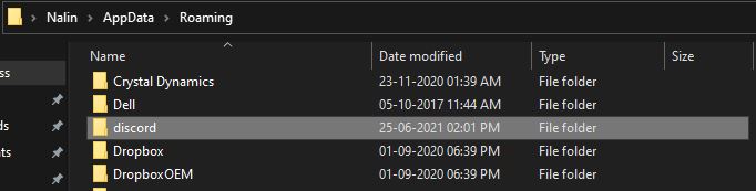 3. Find the Discord folder and delete it . Make sure to delete it from the recycle bin too.