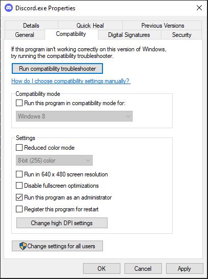 4. Go to Compatibility , select Run this program as an administrator . Then press Apply and OK .