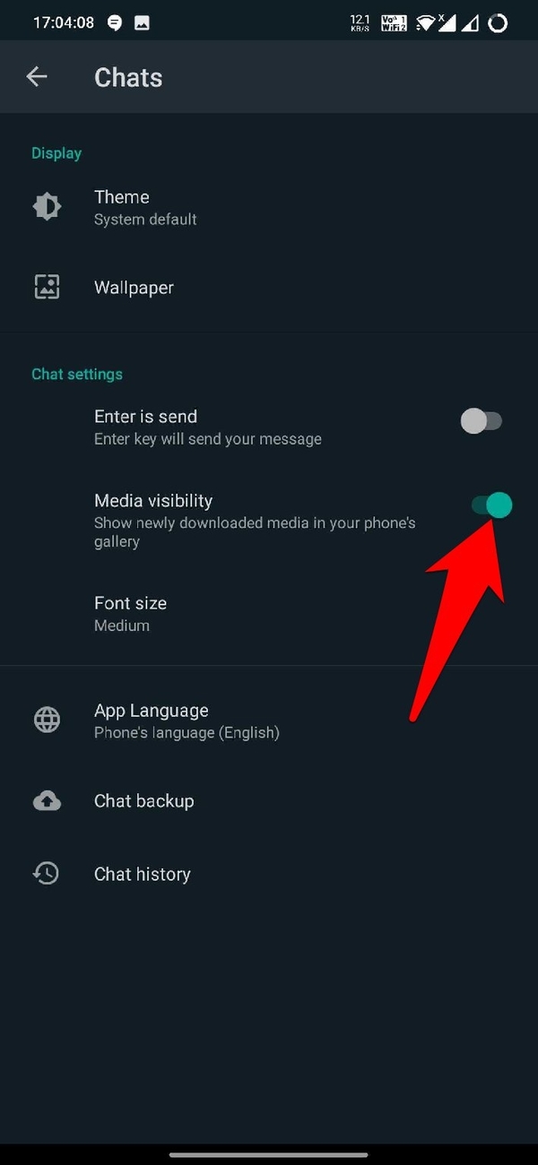 4. In the Chats menu, toggle the “Media Visibility” switch “on.”