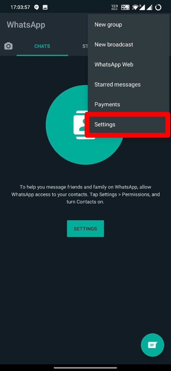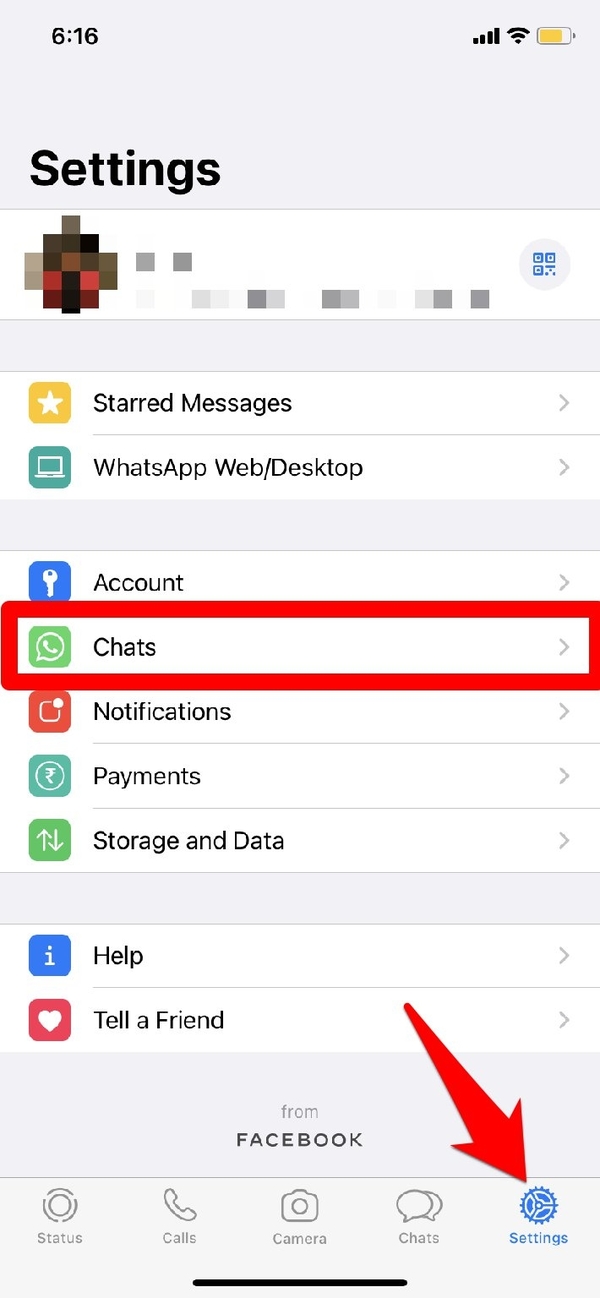 1. Launch WhatsApp and click on “Settings” in the bottom right corner of the screen.