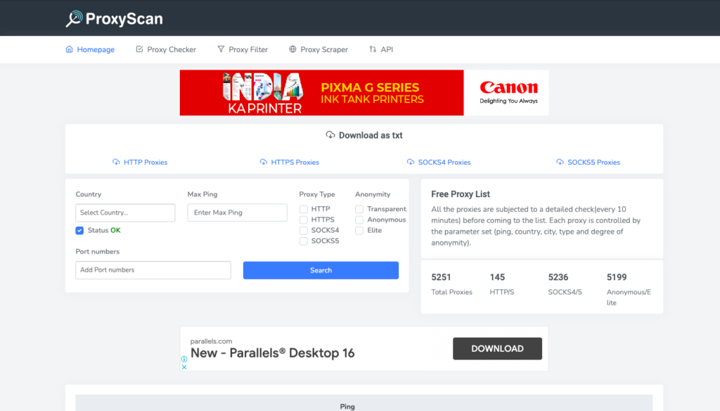 ProxyScan is a standard site offering a free proxy list with more than 5000 proxies in store for users. All the proxy sites offered by ProxyScan are checked every 10 minutes.