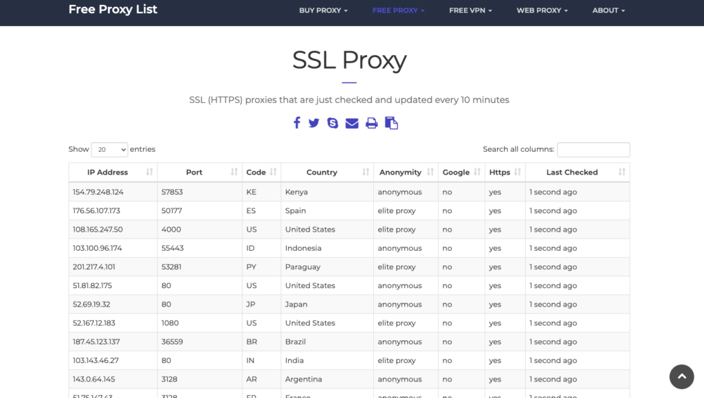 What makes this site unique is that all the proxies enlisted here are frequently checked, therefore eliminating the chances of finding a free proxy that doesn’t work. Here, you can find a proxy server list for a variety of purposes like adding an extra layer of protection to your internet traffic or scraping data from a website without harming it, and more.