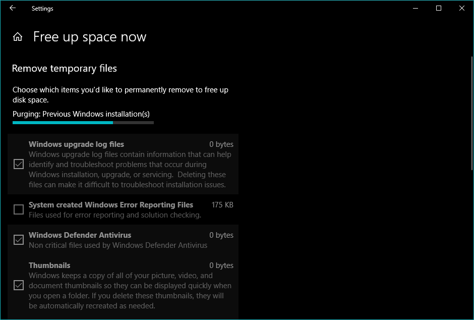 . Wait for some time until Windows scans the files that can be deleted to free up space.