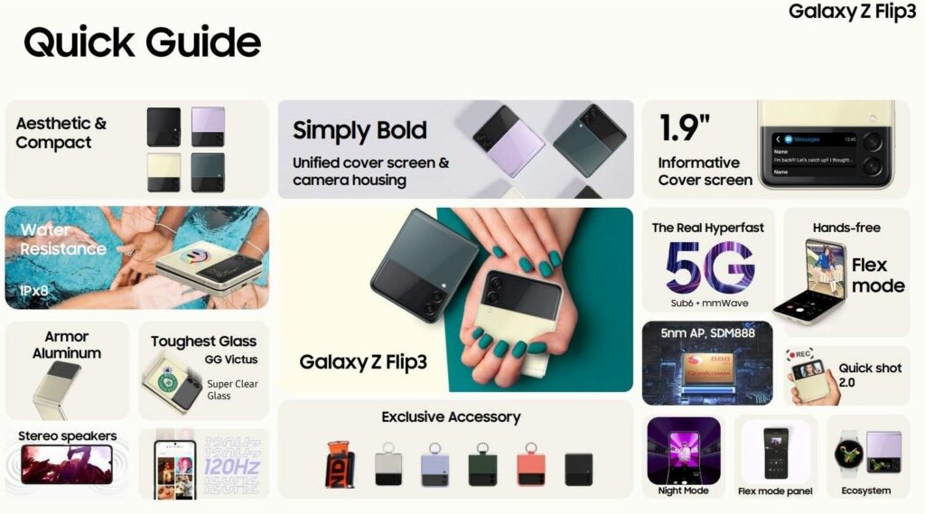 The biggest visual change in Galaxy Flip3 is the front design and the processor. Samsung has gone ahead and equipped the Samsung Galaxy Z Flip3 with Snapdragon 888, Qualcomm’s second most powerful mobile CPU.